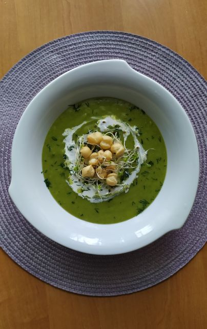 Zupa krem z brokułów i groszku.