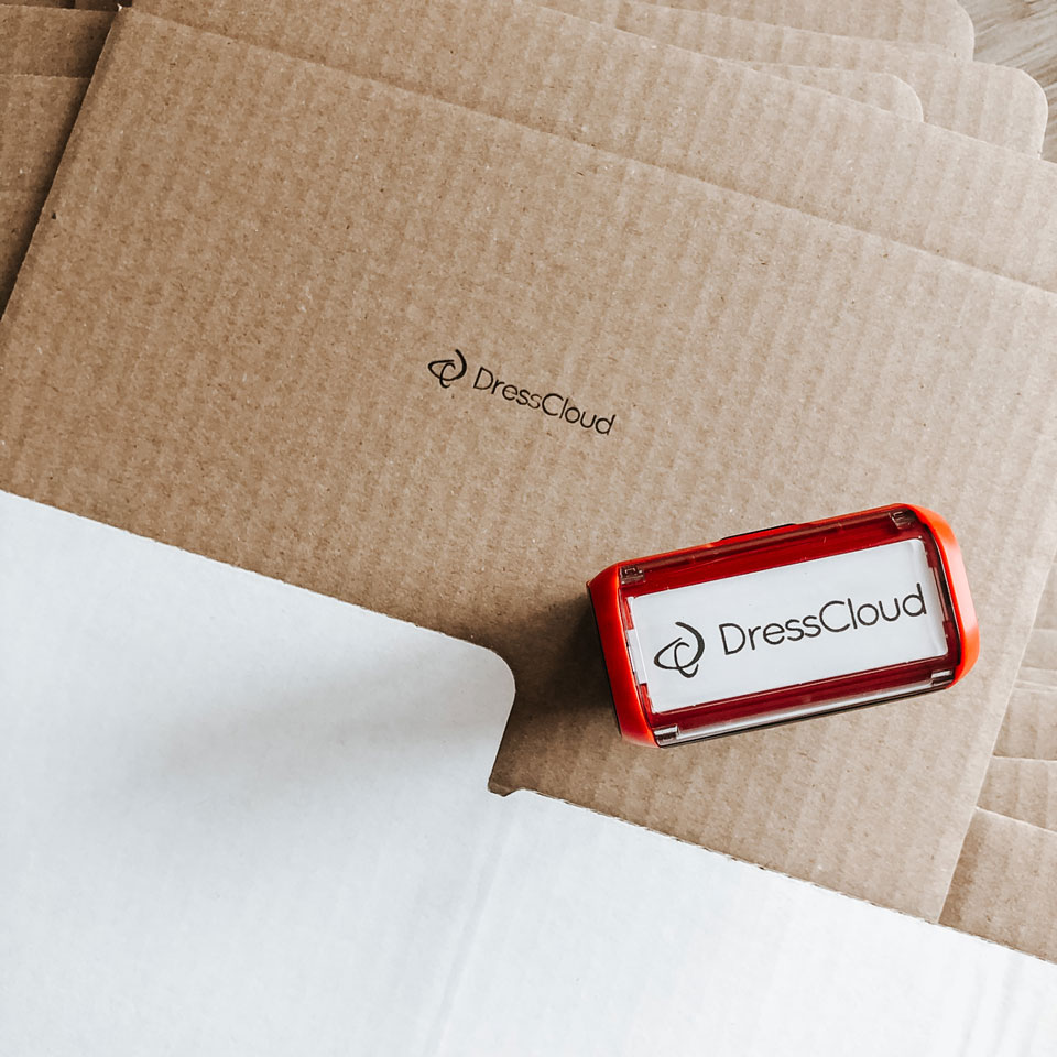 Proste rozwiązania są często najlepsze. Teraz w internecie np. na stronie Poczty Polskiej można zamówić kartony różnych rozmiarów w niewielkich pakietach jak np. po 20 sztuk. Mogą być białe jak nasze dresscloudowe, czy brązowe, które wybiera wiele sklepów. Wystarczy nakleić na nie własną naklejkę z logo i dodać personalizację po prostu - pieczątką. Aby pudełko w środku nie wyglądało tak surowo można wypełnić je kolorową bibułą lub innymi wypełniaczami. I można się pobawić czy zaklejamy je naklejką, a może wstążeczką, sznurkiem.