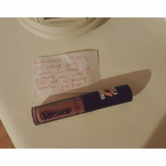 Matowa pomadka Lovely Extra Lasting nr 4. Mimo, że na rynku można ją dostać już od dawna, ta jest moją pierwszą . Czwóreczka to bardzo naturalny kolor, podkreślający mój naturalny odcień i kontur ust. Bardzo przypadła mi do gustu i do mocniejszego makijażu oka wyglada naprawdę ładnie. Moje pierwsze wrażenia nie były zbyt pozytywne, ponieważ wydała mi się zbyt naturalna, ale kolejne podejścia ostatecznie mnie do niej przekonały.