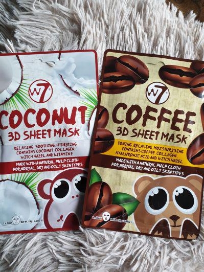 W7, Coffee, 3D Sheet Mask; Coconut, 3D Sheet Mask