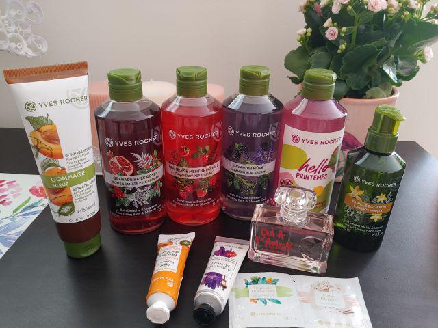 -Yves Rocher - Żel pod prysznic, Owoc granatu i czerwony pieprz. Przecudowny zapach i kolorek, od razu po rozpakowaniu paczuszki i powąchaniu poszłam do łazienki i umyłam tym żelem dłonie i jestem oczarowana. Żel ma przepiękny zapach, idealną konsystencję, na dodatek po spłukaniu produktu dłonie nadal pięknie pachniały.