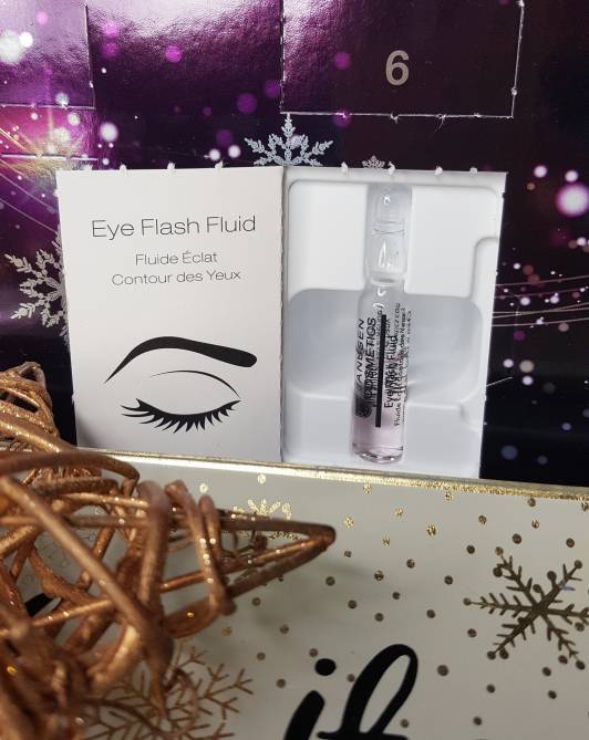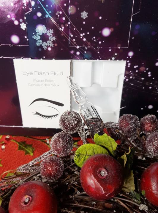 W 3 okienku kalendarza adwentowego znalazłam ampułkę z serum pod oczy. Eye Flash Fluid to serum do pielęgnacji tej delikatnej i wrażliwej strefy. Kombinacja krótko i długo łańcuchowego kwasu hialuronowego pozwala wygładzić zmarszczki powstałe na skutek przesuszenia skóry, liftinguje kontur i zmniejsza obrzęki. Ampułka zawiera też kompleks peptydowy poprawiający napięcie i elastyczność, działa przeciwzmarszczkowo. Eye Flash Fluid nadaje wypoczęty wyraz twarzy, blask i świeżość w ciągu zaledwie kilku minut po aplikacji. W dłuższej perspektywie, skóra odzyskuje utracony poziom nawilżenia, a głębsze zmarszczki stają się wyraźnie zmniejszone. Serum zawiera subtelną nutę zapachową. Ampułka zawiera 2 ml produktu.