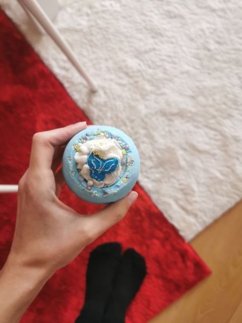 Kolejna urocza babeczka do kąpieli z BC, którą wypróbowałam Babeczka wygląda jak prawdziwa , mogłabym ją zjeść Starcza na 3-4 razy, aczkolwiek ja wrzuciłam ją na raz , bo miałam ochotę na wyjątkową kąpiel . Babeczka zmieniła kolor wody na mleczny, wytworzyła niewielką ilość a la pianki. Jeśli chodzi o właściwości to miała bardzo dużo masła kakaowego i bardzo odżywiła moją skórę , i sprawiła że była bardzo miękka. Babeczka ma też w składzie olejki z róży i geranium, więc pięknie pachniała. Sprawiła że moja kąpiel była wyjątkowa