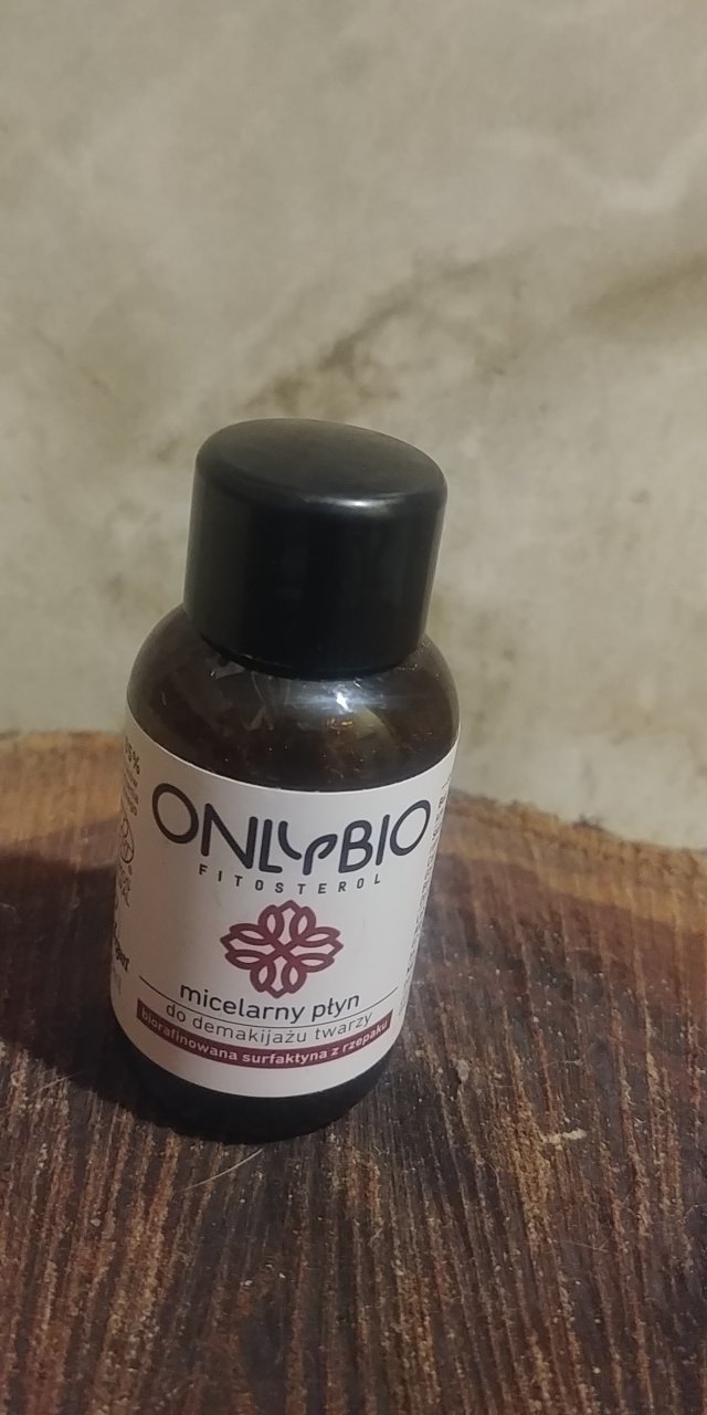 OnlyBio - płyn micelarny do demakijażu twarzy, biorafirowana surfaktyna z rzepaku. Zdecydowałam się na jedno kupno że względu na dobry skład, kupiłam miniaturkę i dobrze że tak zrobiłam. Ogólnie płyn do dobrze zmywa makijaż i oczyszcza twarz, nie zostawia filmu, buzia jest po nim miękka. Ale niestety mnie po jego użyciu pieką oczy jak by nie ten minus płyn zagościł by na długo na mojej półce.