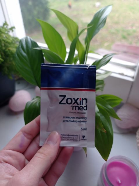 ZOXIN-MED, szampon przeciwłupieżowy. Odpowiedni też do w łojotokowym zapaleniu skóry. Ostatnio bardzo trudno jest mi znaleźć odpowiedni szampon, który będzie nie tylko dobrze mył włosy ale też utrzymywał skórę w dobrej kondycji. W lecie mam z tym dość spory problem. Ostatnie szampony, których używałam, niestety nasiliły problem i już po umyciu skóra była w beznadziejnym stanie. Zoxin zdecydowanie mi ten stan poprawił. Szampon jest różowy, dość dobrze się pieni (chociaż ja zawsze używam więcej bo moje włosy są takie gęste, że trudno o pianę jeżeli dam mało szamponu). Można go kupić w 100 ml opakowaniu i na małe saszetki.