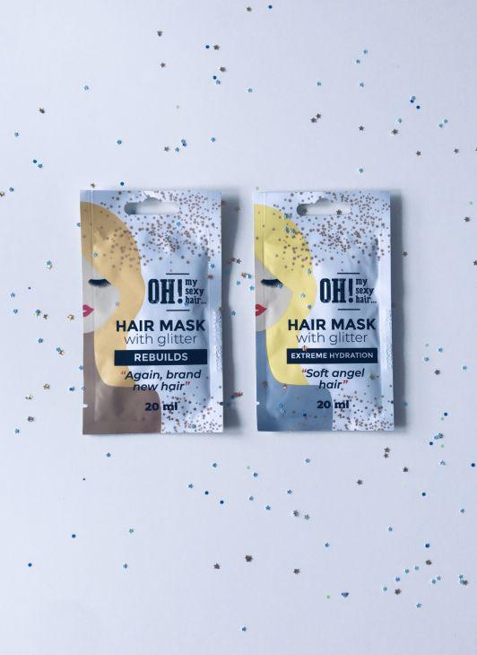 3 brokatowe maski do włosów Oh!My Sexy Hair: deep conditioning, extreme hydration i rebuilds