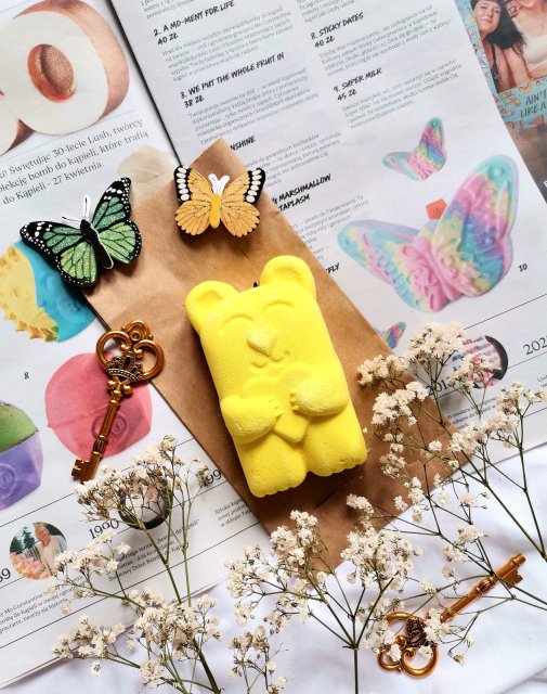 Kula do kąpieli LUSH Hulder. Kula przede wszystkim zachwyciła mnie swoim ciekawym wyglądem i kolorami. Po rozpuszczeniu w wodzie zabarwiła ją na intensywny zielony kolor. W wodzie również pływały brokatowe drobinki. Kolor był bardzo intensywny, co mi się bardzo podobało. Do tego w łazience unosił się przepiękny zapach. W składzie produktu mogliśmy znaleźć takie składniki jak sól morską, olejek mandarynkowy, olejek davana czy olejek elemi. Po samym składzie możemy zobaczyć, że jest to bomba odżywcza dla naszego ciała. I tak też było po wyjściu z wanny. Skóra była miękka w dotyku, bardzo przyjemnie pachniała i była dobrze nasączona olejkami. Świetny produkt .