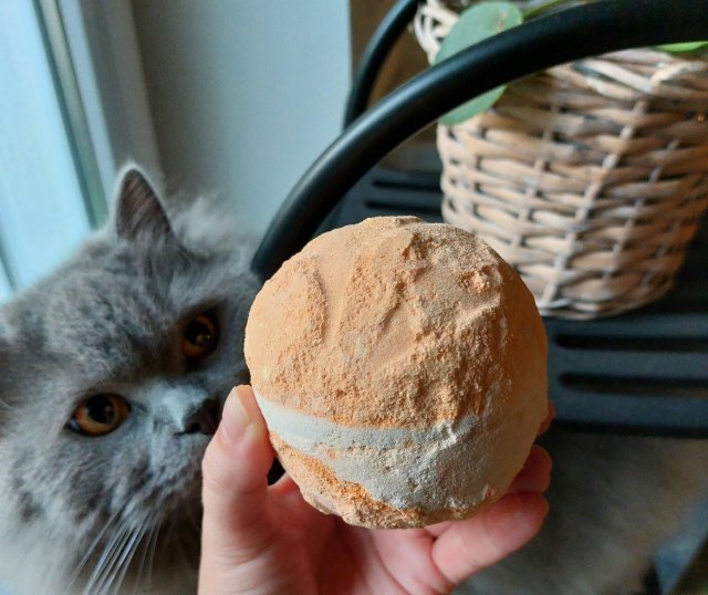 🚤 Going Naked is Better - Brazylijski olejek pomarańczowy, olej z trawy cytrynowej, olej z nasion kolendry. Ja wyczuwam w niej spory zapas kokosa.. Ciekawe co pokaże mi środek kuli.
