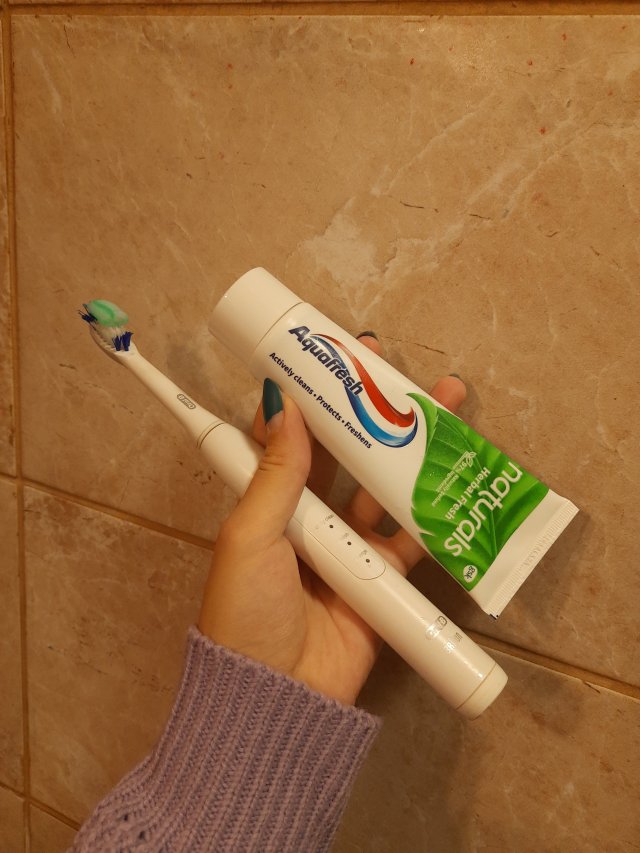 Kosmetyk do higieny jamy ustnej czyli nic innego jak pasta do zębów. Tym razem od marki aquafresh. Mam w sobie trzy działania silnie wybiela zapewnia świeży oddech po jej użyciu oraz bielsze zęby. Jej pojemność to 100 ml nie czuc tak bardzo mięty to jest na Plus. Lubię takie pasty .nie kosztowało na dużo około 8 zl