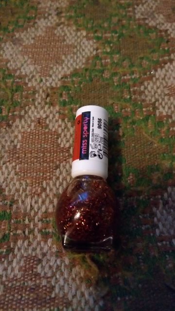 Lakier, który wzięłam przez przypadek. Chciałam wziąć zwykły brokat, a w koszyku wylądował lakier "piaskowy". Kiedy z resztą bardzo modny. XD
