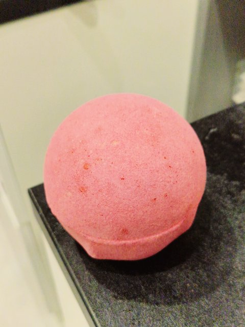 Lush Cosmetics - Bubble Bars The Comforter- kula z Lush która robi pianę. Była super i dała mega odprężenie podczas kąpieli, barwiła wodę na różowa. Pokochałam ten produkt