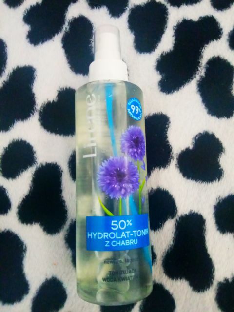Produkt marki Lirene, który od dłuższego czasu chciałam kupić i wypróbować. Jest to swoista kosmetyczna hybryda, hydrolat i tonik w jednym. Płyn zawiera w swoim składzie 50% hydrolatu z chabru. Skład kosmetyku jest krótki, w 90% naturalny i wegański. Woda kwiatowa na za zadanie nawilżać i łagodzić. Tonik z kolei ma regulować wydzielanie sebum i tonizować.