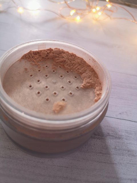 Puder cieszy się niesamowicie dobrą opinią w blogsferze. Postanowiłam więc wypróbować go sama. Kosmetyk znajduje się w zakręcanym słoiczku, który wygląda dość solidnie. Jest białego koloru, ale po nałożeniu na twarz bardzo dobrze wtapia się w skórę. Nie za bardzo przepadam za sypkimi pudrami, bo kiedyś sprawiała mi dużo problemów ich aplikacja. Teraz jest jednak o wiele lepiej.