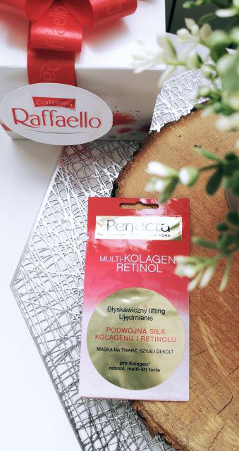 Pefecta, Multikolagen-retinol, maska na twarz, szyję i dekolt, błyskawiczny lifting, ujędrnienie, ma ona przyjemny zapach, który przez jakiś czas jest wyczuwalny. Ma ona lekką konsystencję, dzięki czemu dobrze nakłada się ją na twarz. Maseczkę najpierw nałożyła na kilka minut na twarz, a następnie jej pozostałości wmasowałam w skórę. Skóra po jej użyciu była napięta, odżywiona oraz gładka.