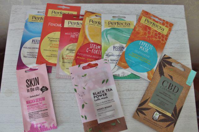 5. Maski Perfecta, Fenomen C i Multi Kolagen. Znajdują się w pojedynczych saszetkach. Kolorystycznie są zbliżone, jedna różową, a druga pomarańczowa. Obie są o pojemności 8 mililitrów. Konsystencje mają żelową, wyczuwalna przez opakowanie.