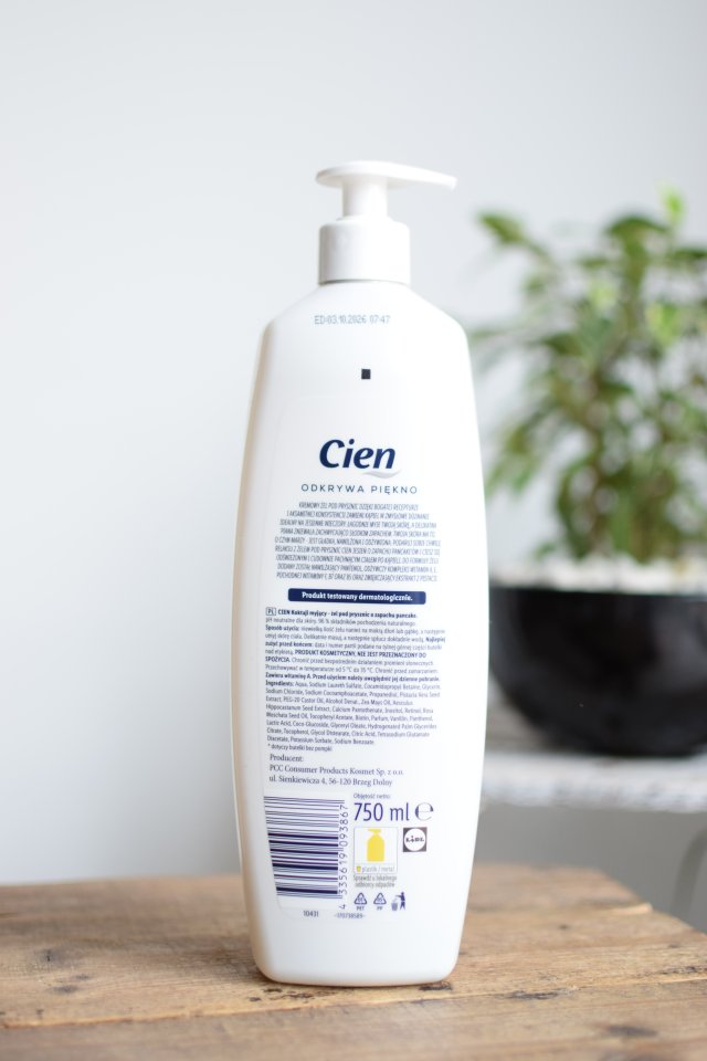 / Cien, żel pod prysznic, z goździkowcem korzennym, edycja świąteczna. Od żelu nie wymagam wiele, ma dobrze myć i fajnie pachnieć. Ten zapach był okej, ale na dłuższą metę trochę meczący. Nie utrzymywał się też na ciele, więc mały minus. Było też kiepsko z wydajnością. Można przetestować, ale szału nie ma. Chmurka: https://dresscloud.pl/cloud/kosmetyki/zele-pod-prysznic/735487-cien-zel-pod-prysznic-edycja-swiateczna-z-gozdzikowcem-korzennym/
