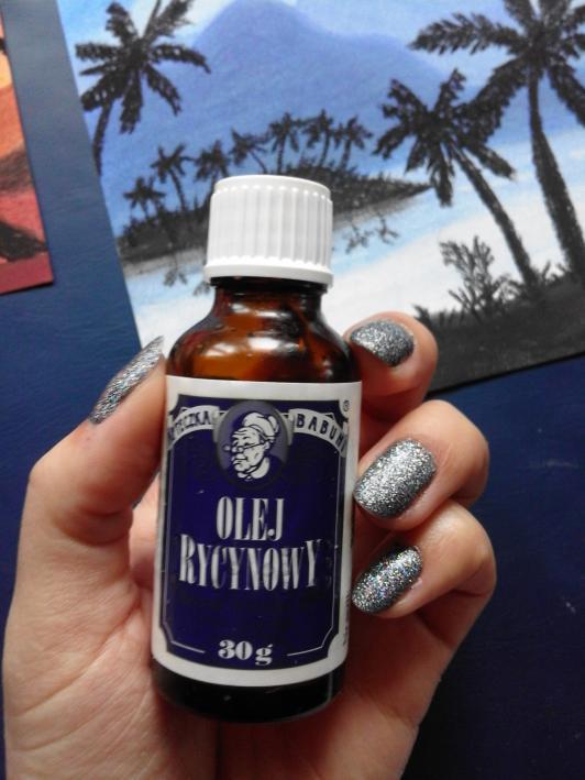 Olej rycynowy, który kupuję za około 3zł w aptece. Używam go na brwi, rzęsy i paznokcie. Dzięki niemu moje brwi i rzęsy szybciej rosną i są grubsze oraz ciemniejsze, a paznokcie o wiele mocniejsze, skórki są gładsze. Używałam jej kiedyś także na końcówki włosów, ale żadnych efektów nie zauważyłam.