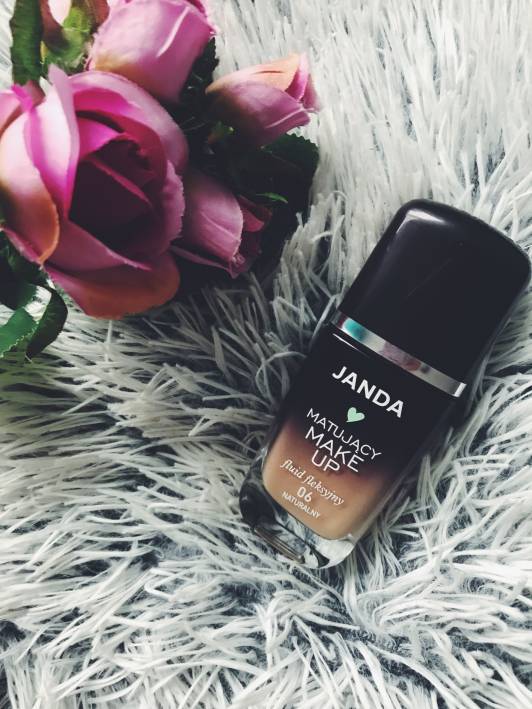 Podkład Janda Sceniczny Make-Up, dobrze matujący w odcieniu 05 naturalny. Tak jak pisałam Wam pod chmurką z wersją kryjącą - kupiłam go podczas promocji na kolorówkę w Rossmannie, z polecenia znajomej i kilku blogerek na Instagramie. Producent zapewnia nam efekt gładkiej, nieskazitelnej skóry oraz naturalne matowo-satynowe wykończenie. Odcień tego podkładu jest dla mnie za ciemny, ale na szczęście nie błyszczy się tak, jak wersja kryjąca. Nie podkreśla porów, nie robi efektu ciastka, ale powoduje wysypy i intensywnie pachnie. Miłości nie ma i nie będzie, niestety.