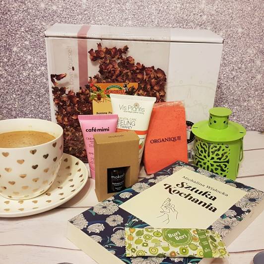 Żel pod prysznic jest kosmetykiem premierowym, skarpetki również. Kosmetyczkę Mokosh już posiadam więc będę miała dwie . W kosmetyczce znalazłam też metalową szpatułkę do kremów. A do tego próbki spośród, których są takie, które będą dla mnie całkowitą nowością, lecz także coś co już znam np. wypełniający krem do biustu, który zrobił na mnie wielkie wrażenie swoją treściwością, tym jaką ma bogatą konsystencję oraz tym jak fantastycznie nawilża skórę. Do tego ma bardzo ciekawy zapach, o dziwo jest on goździkowy, z początku trochę mnie gryzł, ale później już się przyzwyczaiłam. Znany jest mi również balsam do ciała żurawina, również bardzo przyjemny, odżywczy i nawilżający, a jego zapach bardzo mi się spodobał, jest słodki, a zarazem jakby kwaskowaty - bardzo ciekawy. Do tego jeszcze serum do twarzy pomarańcza, które póki co sprawdziłam tylko kila razy, bo zużywam kosmetyki, które mają dużo substancji aktywnych i nie chcę przesadzić ze stymulowaniem skóry, bo to nie kończy się u mnie dobrze. Niemniej jest to serum olejowe, fantastyczne na noc, a do tego cudownie pachnące pomarańczką .