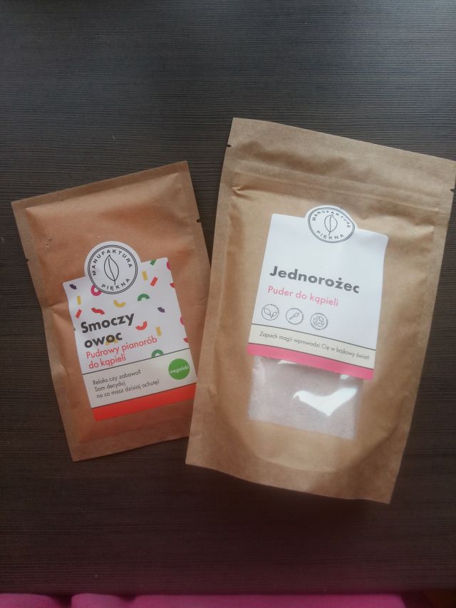 Manufaktura piękna "Jednorożec" puder do kąpieli. Gdy dowiedziałam się o tych cudach, chętnie sięgnęłam po nie.