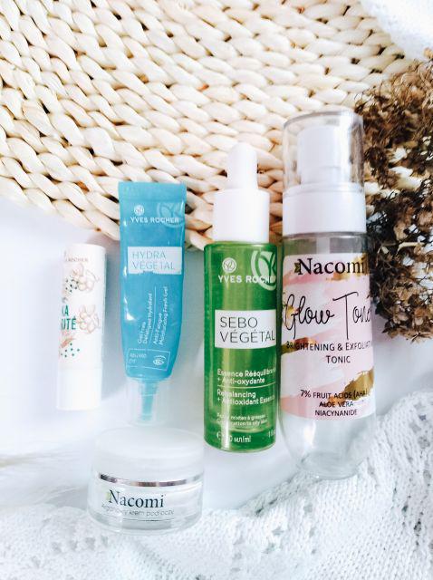 Tonik złuszczająco-rozświetlający 80ml Nacomi Toner doskonale wyrównuje pH skóry. Oparty na owocowych kwasach AHA, które delikatnie złuszczają naskórek i stymulują jego odnowę. Roślinny odpowiednik śluzu ze ślimaka pozyskany z czerwonego żeń-szenia odpowiedzialny jest za łagodzenie stanów zapalnych oraz dogłębne nawilżenie oraz poprawę jedności skóry. Nawilżenie i regeneracja Praktycznie wszystkie składniki toniku mają właściwości silnie nawilżające i regeneracyjne. Składniki są w taki sposób skomponowane by wszystkie szybko i sprawnie wnikały w głąb skóry. Świetnie nadaje się w pielęgnacji cery poszarzałej, bardzo suchej i matowej. Dodatkowo zmniejsza widoczność przebarwień i blizn, dzięki swoim właściwościom złuszczającym i rozjaśniającym. Działanie przeciwtrądzikowe i przeciwzapalne Działanie złuszczające powoduje wyraźne odświeżenie cery. Składniki takie jak: owocowe kwasy AHA, biotyna oraz hydrolizowane proteiny drożdży zapobiegają namnażaniu się bakterii na powierzchni skóry, niwelują wypryski i stany zapalne skóry. Dodatkowo tonik działa bakteriobójczo oraz normalizują funkcję gruczołów łojowych. Koi, łagodzi i rozjaśnia Nie bez powodu nazywa się GLOW. Możesz się już pożegnać z zaczerwieniami oraz podrażnieniami. Rozjaśnia przebarwienia, oraz odświeża skórę. Idealny na zmarszczki. Wspomaga produkcję kolagenu, elastyny i kwasu hialuronowego, a to jak każdy wie najważniejsze i najbardziej pożądane działanie dla każdej kobiety. Poprawia elastyczność skóry i stan skóry suchej i odwodnionej. Sposób użycia: Nanieść niewielką ilość na wacik i przetrzeć twarz lub bezpośrednio spryskać twarz. Tonik może być stosowany po oczyszczaniu twarzy, jak i przed nałożeniem makijażu. Przed użyciem wstrząsnąć. Omijać okolice oczu. Pojemność: 80ml Skład: AAqua, Aloe Barbadensis Leaf Juice, Acer Saccharum (Sugar Maple) Extract, Citrus Aurantium Dulcis (Orange) Fruit Extract, Citrus Limon (Lemon) Fruit Extract, Saccharum Officinarum (Sugarcane) Extract, Vaccinium Myrtillus Fruit Extract, Sorbitan Oleate Decylglucoside Crosspolymer, Lactic Acid, Glycolic Acid, Hydrolyzed Glycosaminoglycans, Glycerin, Panthenol, Sodium Hyaluronate, Hydrolyzed Yeast Protein, Biotin, Allantoin, Disodium Phosphate, Threonine, Malic Acid, Tertaric Acid, Pyridoxine HCl, Niacinamide, Glycoprotein, Potassium Sorbate, Copper Gluconate, Sodium Benzoate, Sodium PCA, Phenoxyethanol, Citrus Aurantium Dulcis Peel Oil, Benzyl Alcohol, Dehydroacetic Acid, Citric Acid, Limonene, Linalool, Citral, Citronellol.