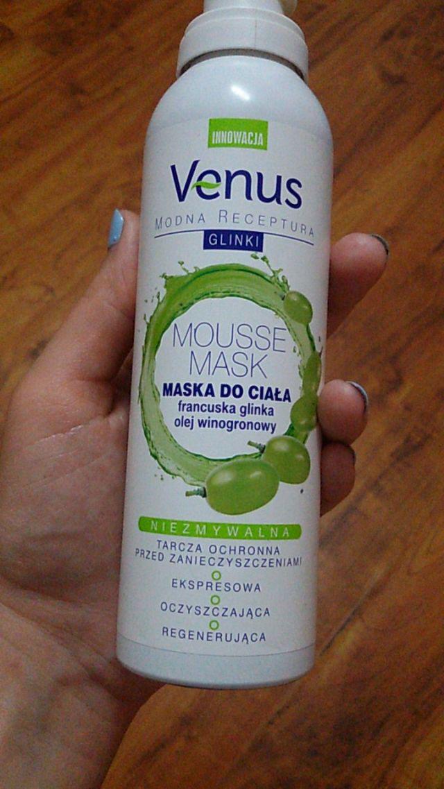 Venus, Modna Receptura Glinki, Maska do ciała `Francuska glinka i olej winogronowy', jest ona w formie pianki, która szybko się wchłania w skórę oraz ma delikatny zapach. Skóra po jej użyciu jest odżywiona, oczyszczona oraz wyrównany zostaje koloryt.