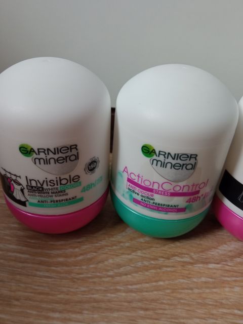 Antyperspirant, Garnier mineral, roll-on, Invisible Protection, Fresh Aloe. Ma ładnych, neutralny zapach. Nie pozostawia plam na ubraniach i nie podrażana skóry. Jest skuteczny i działa nawet po wielu godzinach. Opakowanie jest lekkie, dzięki czemu nadaje się do torebki czy do zabrania w podróż. Opakowanie jest o pojemności 50 ml i kosztuje ok. 13 zł.