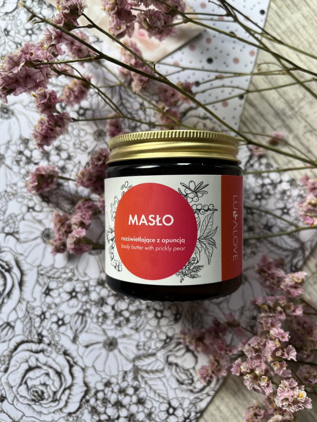 Masło do ciała Lullalove, z zestawu „Gorące ujędrnienie”. Kiedy tylko pierwszy raz je zobaczyłam myślałam, że to słoiczek z jadalnym masełkiem. Zamknięte w szklanym słoiczku z minimalistyczną etykietą. Samo masełko ma delikatną, puszystą konsystencję i przepiękny, słodki zapach czekolady i miodu – aż chciało by się go zjeść. Bardzo łatwo się rozprowadza i dość szybko się wchłania. Doskonale nawilża i natłuszcza skórę, pozostawiają tłustą ale przyjemną warstwę. Efekt nawilżenia i natłuszczenia, podobnie jak zapach utrzymuje się na skórze bardzo długo.