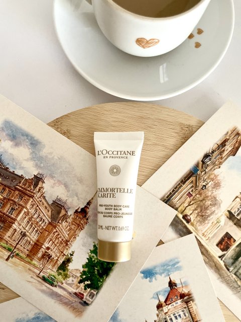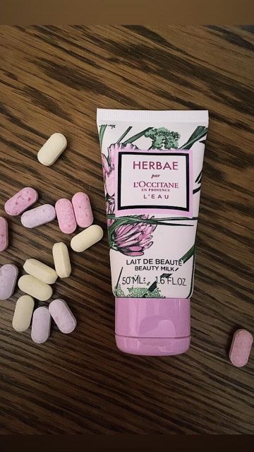 Balsam do ciała 3 Essential Oils od L`Occitane. Jest to taka mini wersja, idealna w podróży bo ma tylko 35 ml. Balsam jest trochę rzadki, więc ze względu na konsystencję określiłabym go mleczkiem. Zapach jest świeży, delikatnie orzeźwiający, ale nie utrzymuje się długo na skórze. W tym balsamie podoba mi się to, że bardzo szybko się wchłania, wręcz ekspresowo. Skóra po nim jest też ładnie nawilżona.