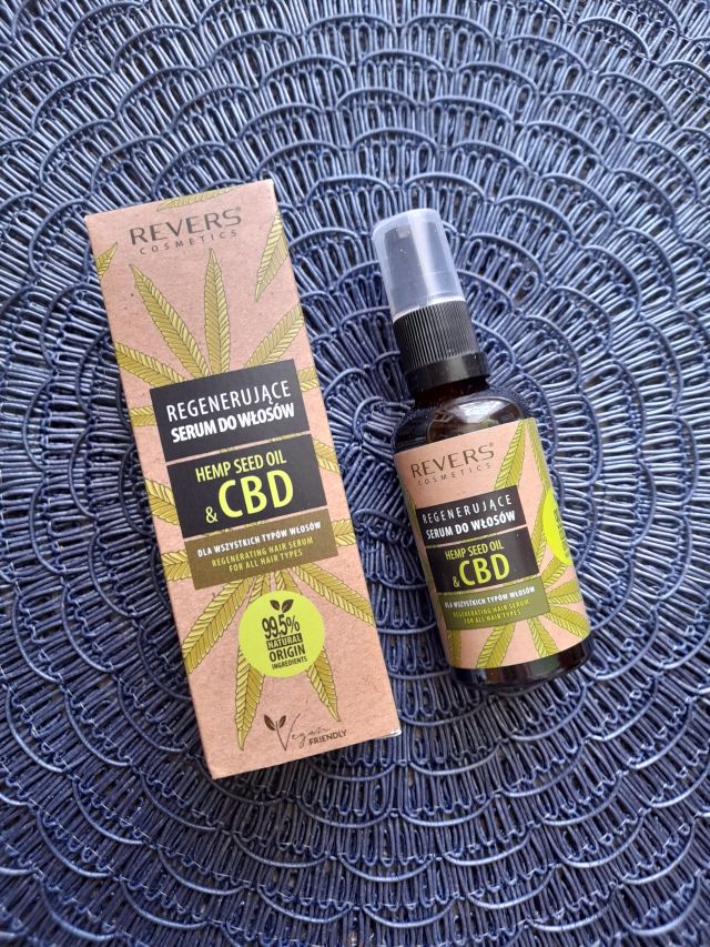 Regenerujące serum do włosów firmy Revers. Serum zawiera naturalny olejek konopny z CBD. Olejek zapobiega rozdwajaniu końcówek, dobrze nawilża i odżywia końcówki włosów, nadaje im piękny blask, a dodatkowo posiada właściwości regeneracyjne. Ja tego olejku zawsze używam na końcówki włosów po ich prostowaniu, dzięki temu nie wyglądają na zniszczone i rozdwojone. A włosy nie są suche. Otrzymałam go w pudełku Beglossy. Polecam 🙂