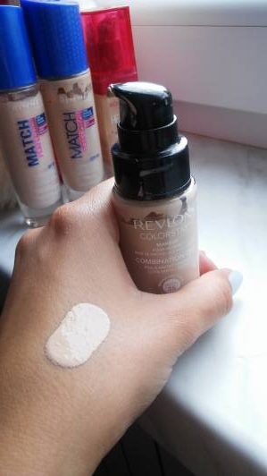 Ulubieniec wielu - revlon colorstay. Czy jest moim? Raczej nie. Kolor ma bardzo ładny, dobrze się utrzymuje i łatwo oraz szybko nakłada się go na twarz. Bardzo dobrze się utrzymuje, ciężko żeby cokolwiek go ruszyło. Minus? Bardzo mocne krycie, do którego ja nie jestem przyzwyczajona, przez co czuję że wygląda ciężko na skórze. Mimo mieszanej skóry wolę lżejsze podkłady z średnim kryciem.
