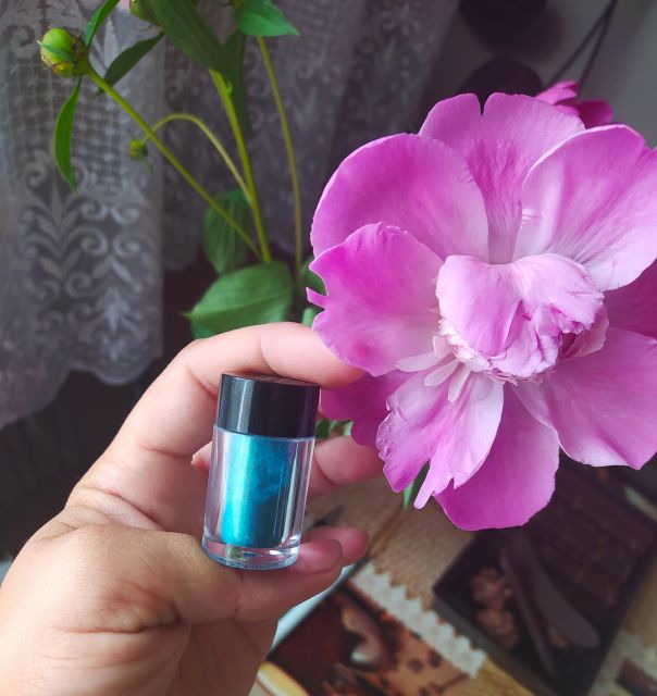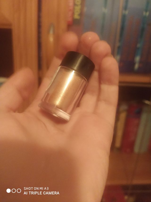 Pigment sypki od Pierre Rene w kolorze 03 Cinnamon. Leżał u mnie z kilka miesięcy, aż w końcu postanowiłam, że go przetestuję i powiem Wam szczerze, że przepadłam Przepiękny kolorek, który wpada w odcienie różu ze złotem Jeśli nałożymy go mało to efekt jest różowy, natomiast jeśli damy go więcej to efekt jest taki jak u mnie Pokazałam na ręce jaka to jest różnica. Pigmentacja jest wspaniała! Pigment trzymał się cały dzień i aż żal było go zmywać, ponieważ wyglądał tak, jakbym go dopiero nałożyła. Pigment naniosłam na bazę pod cienie, dzięki czemu idealnie się "przykleił i nie osypywał. Produkt jest bardzo wydajny i nie potrzebowałam go za wiele, by pomalować powieki, a w opakowaniu mamy go dużo. Jak dla mnie jest świetny