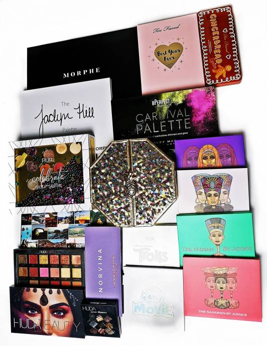 Zestaw kosmetyków, który posłużył mi do zrobienia makijażu z początkiem grudnia 2019 .