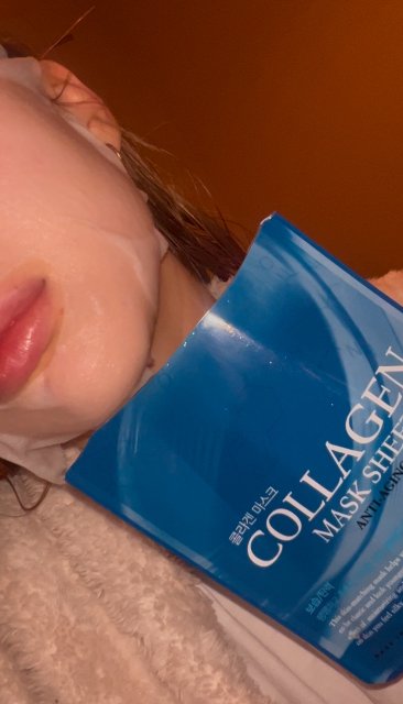 Maseczka, którą wczoraj nałożyłam sobie wieczorem Dostałam ją od Kochanej @dastiina. I jest kolejna maseczka, z której jestem ogromnie zadowolona. Płachtę miała średniej grubości, ale była genialnie nasączona serum, także przylegała rewelacyjnie do twarzy. Resztki serum z opakowania zużyłam na szyję i dekolt. Maska miała bardzo przyjemny zapach, taki typowy dla masek, ale bardzo świeży, lekko słodki. Od samego nałożenia poczułam duże nawilżenie na twarzy i tak było przez cały czas trzymania maski, który przeciągnęłam ile się dało. Buzia była zdecydowanie odświeżona, mocno nawilżona. W składzie kolagen, który przywraca skórze jędrność. Świetna