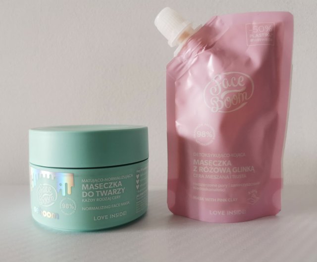 FaceBoom Maseczka do Twarzy Matująco-Normalizująca. Maseczka zamknięta w odkręcanym pudełeczku dzięki czemu można ją zużyć do końca nie pozostawiając resztek. Jest całkiem wydajna, użyłam już jej kilka razy a ledwo widać ubytek.
