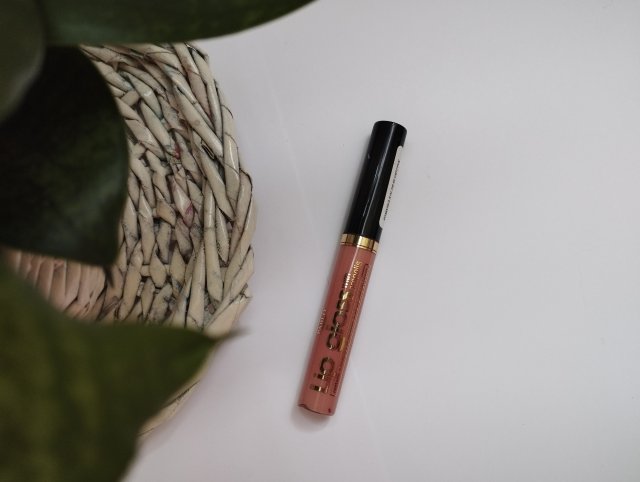 Opakowanie zawiera 7ml produktu, jest z aplikatorem. Opakowanie wykonano z przezroczystego plastiku. Napisy są w kolorze złotym. Pomadę zakręca się za pomocą czarnej nakrętki. Aplikator jest standardowy, taki jaki jest w błyszczykach.