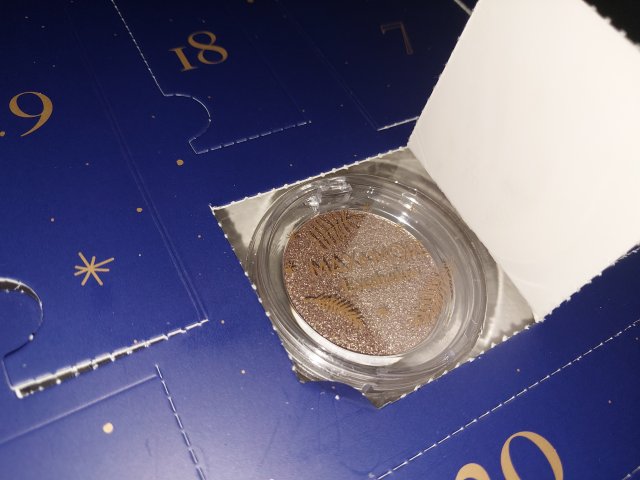 Okienko nr 15 kalendarz Max&More a tam cień do powiek w odcieniu 287 Go All Out. Absolutnie jestem zachwycona tym odcieniem. To taki brąz wymieszany ze złotem. Pigmentacja jest świetna i jeszcze pięknie się mieni. Do wieczorowych makijaży będzie idealny. Opakowanie ma 2,3grama.