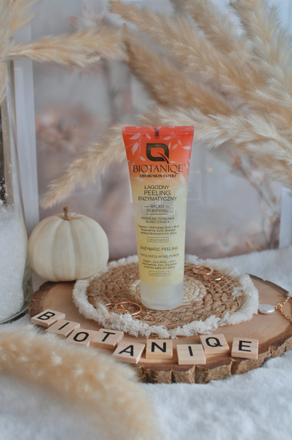 Biotanique peeling enzymatyczny do twarzy zakupiłam na promocji w drogerii Rossman potrzebowałam enzymatycznego peelingu do twarzy zaciekawił mnie jego skład więc postanowiłam wypróbować. Peeling ma przezroczystą konsystencję w formie żelu nakładam go na lekko zwilżoną twarz nie pieni się. Producent zaleca by peeling pozostawić na minimum 15min też tak robię czasem ma dłużej można go śmiało używać 2-3 razy w tygodniu. Po regularnym stosowaniu zauważyłam, że zaskórniki się zmniejszyły nie podrażnia skóry nie powoduje pieczenia czy innego dyskomfortu. Czuć że cera jest oczyszczona i odświeżona ilość zaskórników też się zmniejsza, a także sebum na twarzy jest mniejsze. Fajny peeling warto go stosować.