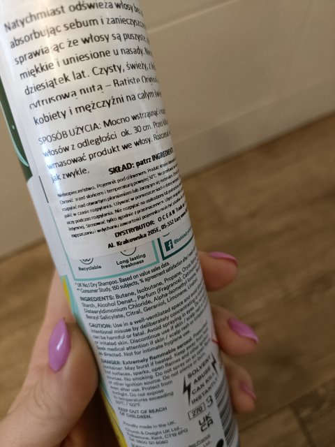 To mój sprawdzony ratunek na te dni, kiedy nie zdążę umyć włosów, a zależy mi na szybkim odświeżeniu. Działa dokładnie tak, jak powinien – błyskawicznie unosi włosy u nasady, odświeża je i przywraca im objętość. Zapach Classic Fresh jest lekki, świeży i nieprzytłaczający – idealny na co dzień. Nie pozostawia białych śladów na włosach, co jest dla mnie bardzo ważne. Wielki plus za duże opakowanie, które ma aż 350 ml, a cena to ok 20 zł.