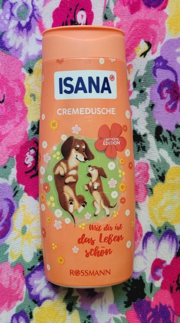 Żel pod prysznic Isana Mit Dir Ist Das Leben Schon kupiłam go ostatnio w Rossmannie. Mimo dużej ilości żeli pod prysznic musiałam go kupić. Skusiła mnie przeurocza grafika z psiakami . Żel ma prześliczny zapach. Pieni się świetnie i ma lekką konsystencję. Bardzo dobrze oczyszcza skórę ale nie nawilża jej. Nie odczułam jednak też aby ją przesuszał. Tani żel o świetnym zapachu i cudownym opakowaniu.